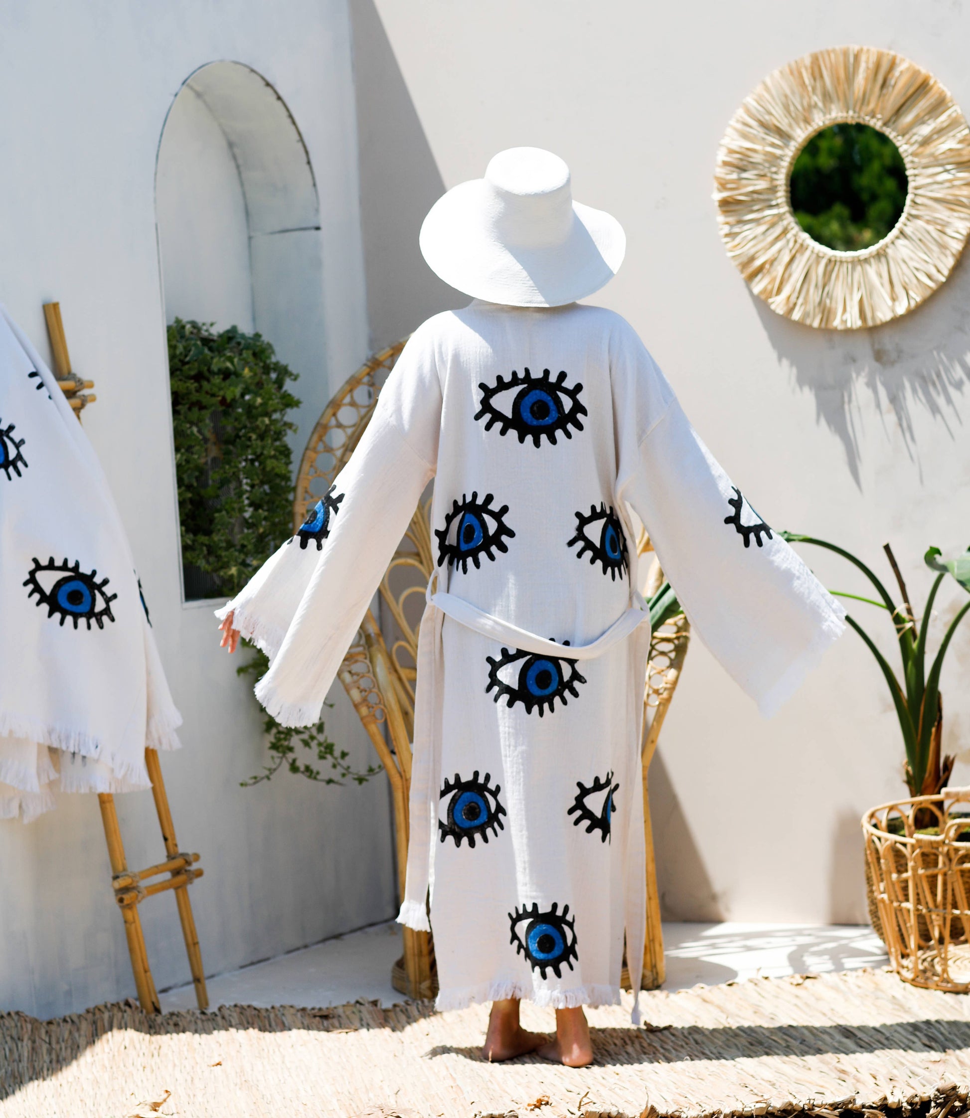 Whether you're spending the day at the beach, picnicking in the park, or just lounging at home, The lightweight, breathable fabric will keep you cool and comfortable, and protected from evil spirits and evil eyes.