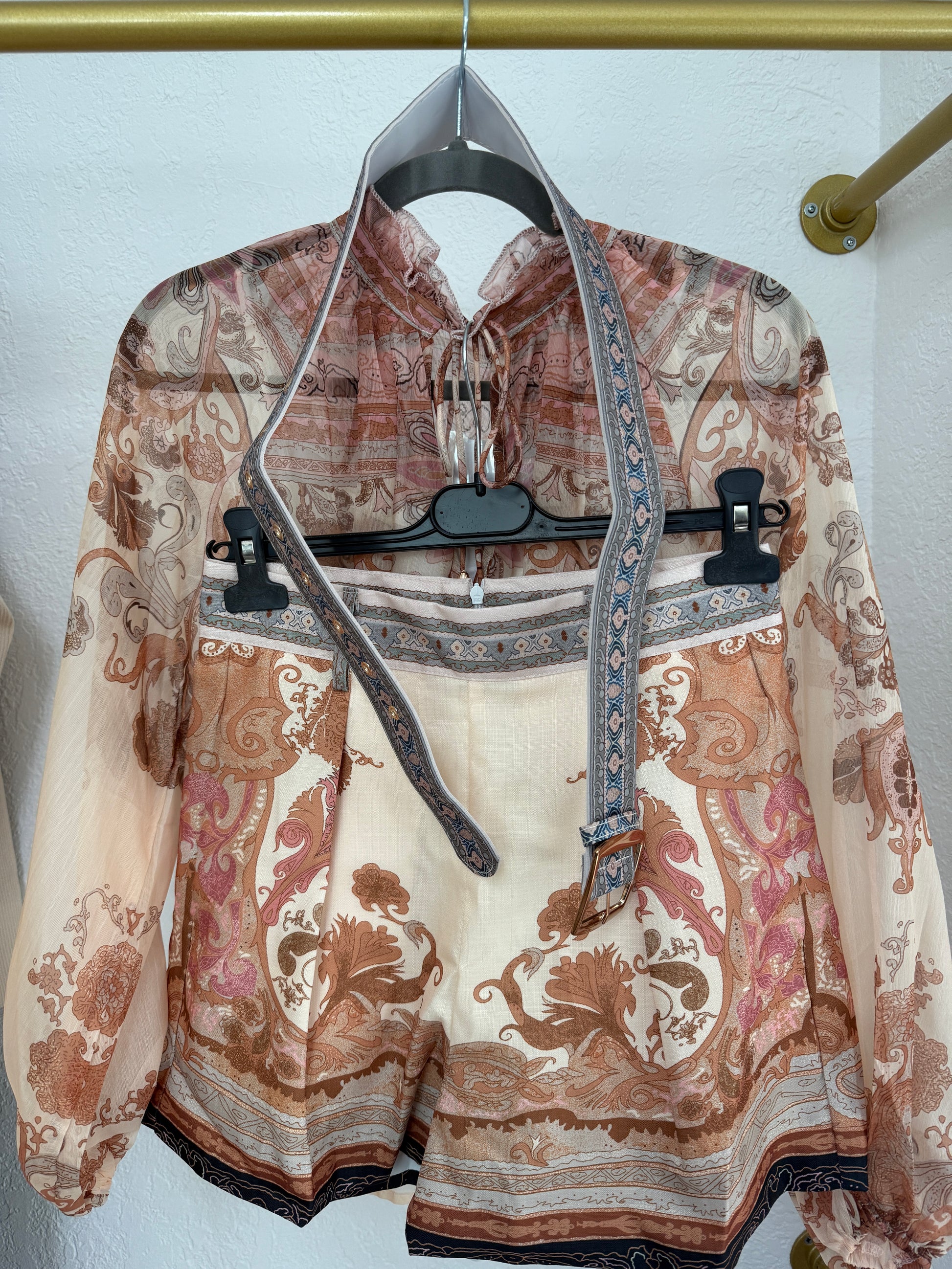 Shorts Set/ 4 pc / Blouse/tank top/ Shorts/Belt